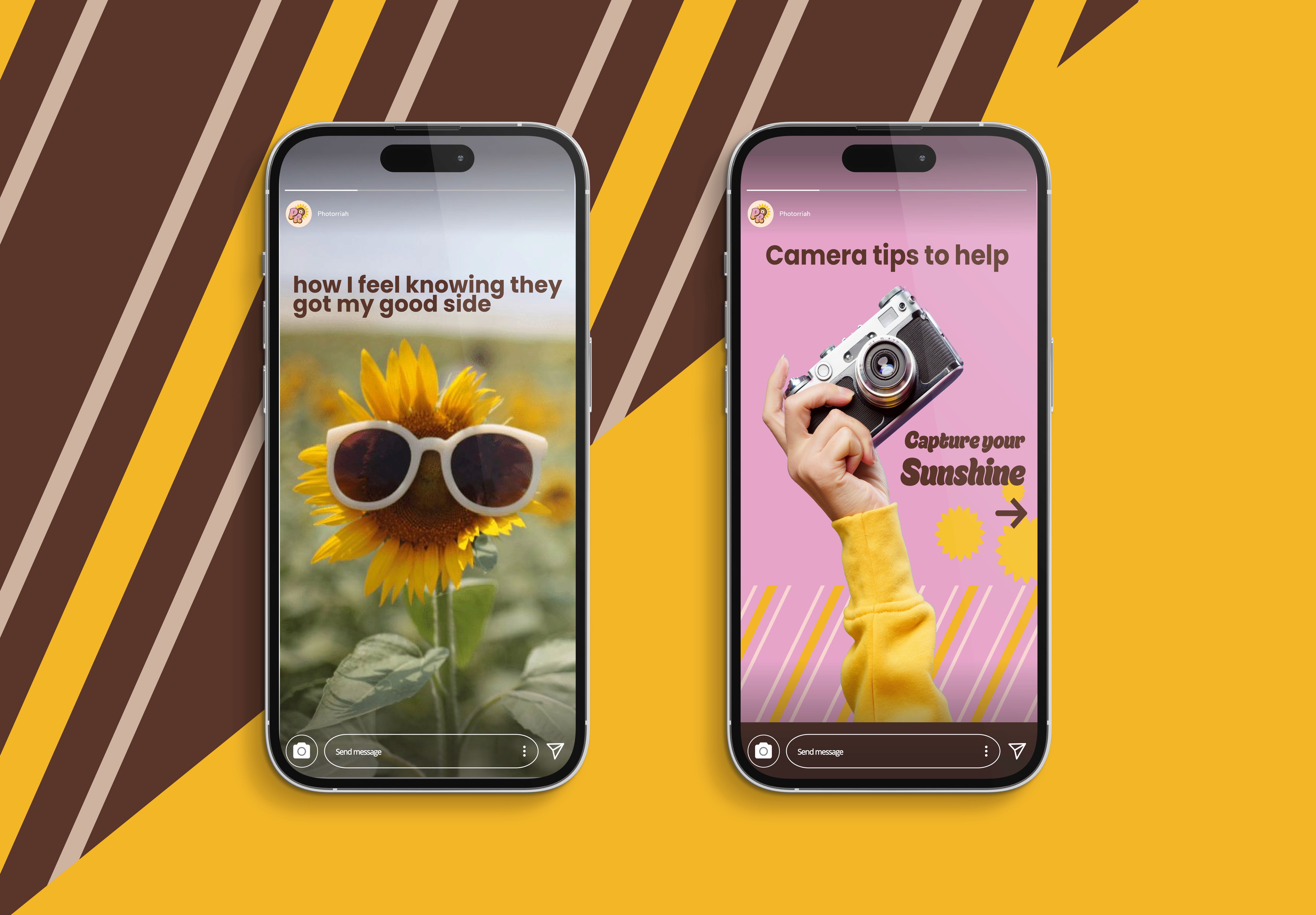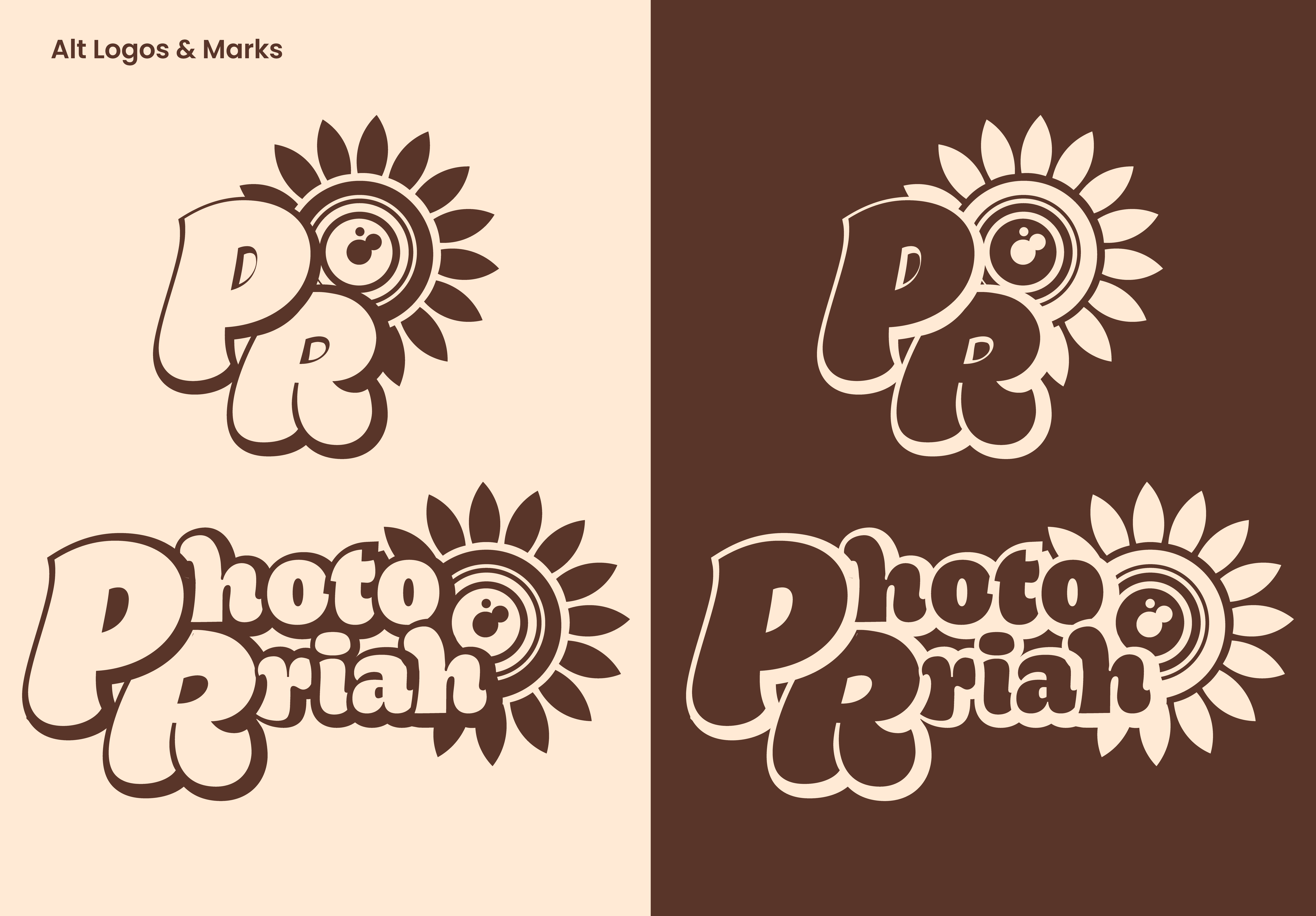 The sunflower icon grounds the brand while feeling approachable and joyful, creating instant recognition for Photorriah. Playful organic letterforms bring energetic, genuine personality without sacrificing legibility, while sunny yellows and natural tones reflect the brand's focus on light and authentic moments. The modular system works seamlessly across every client touchpoint—from initial social discovery to photo delivery. This resulted in me providing my client with a: