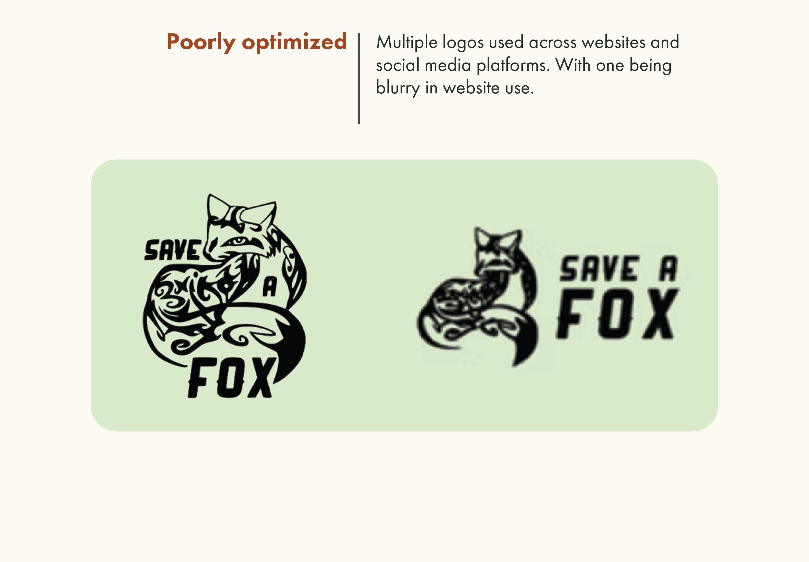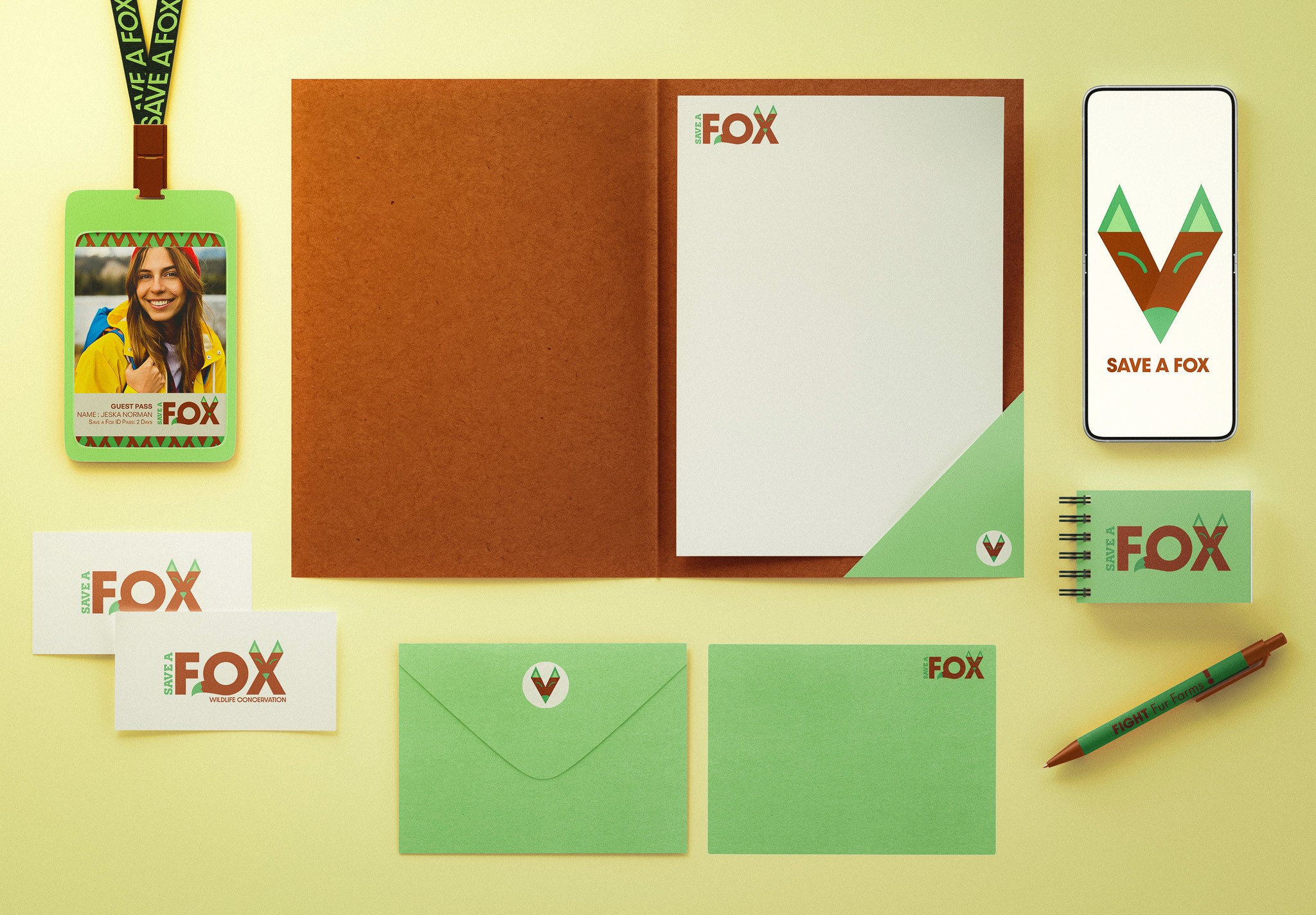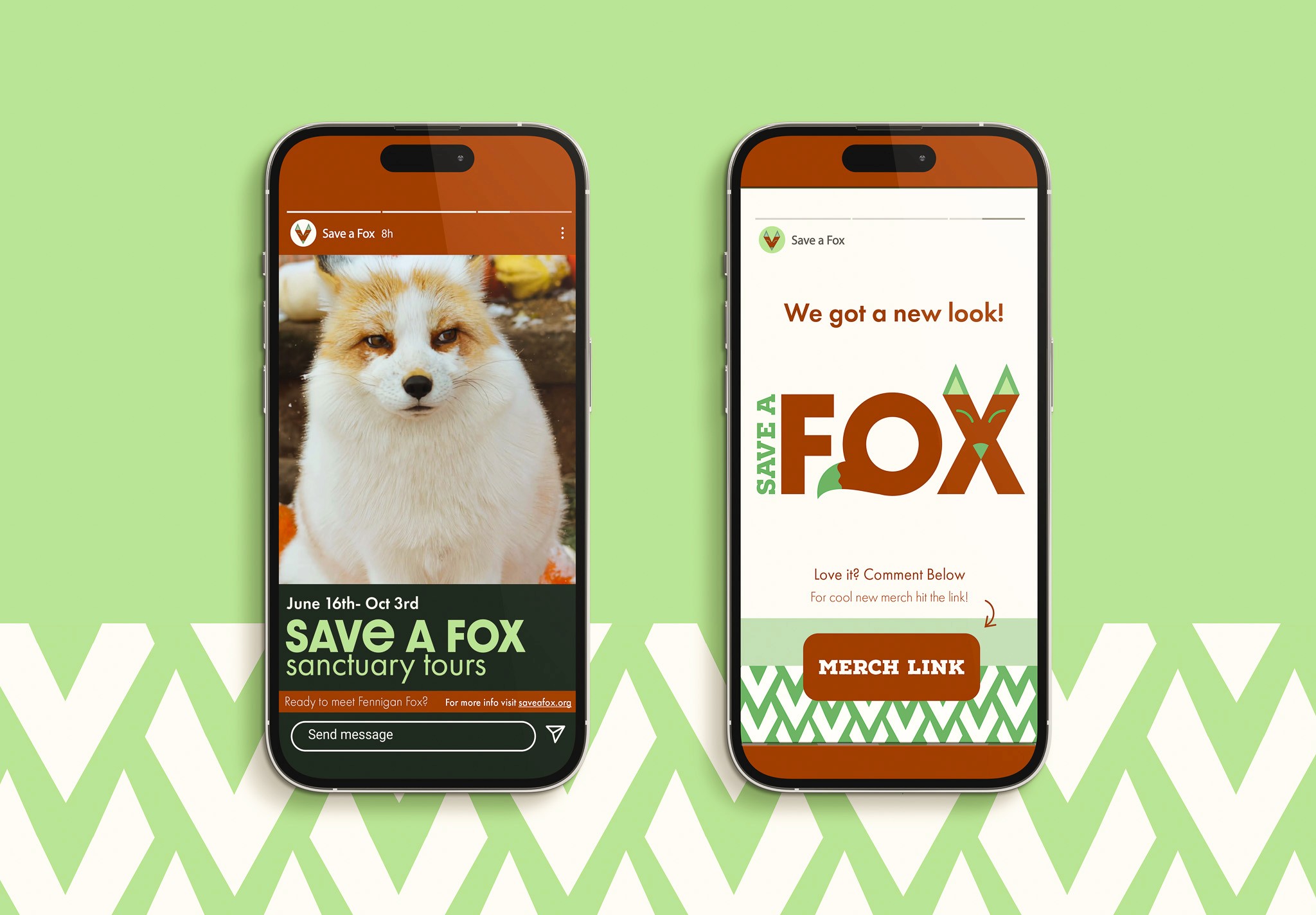 The Save a Fox refresh refined the brand's core values through a playful yet professional presentation that connects with both existing and new advocates. The design system draws inspiration directly from fox characteristics—incorporating hidden fox shapes within letterforms, V-shaped patterns from their head shape, and auburn tones sampled from red fox fur pigments.